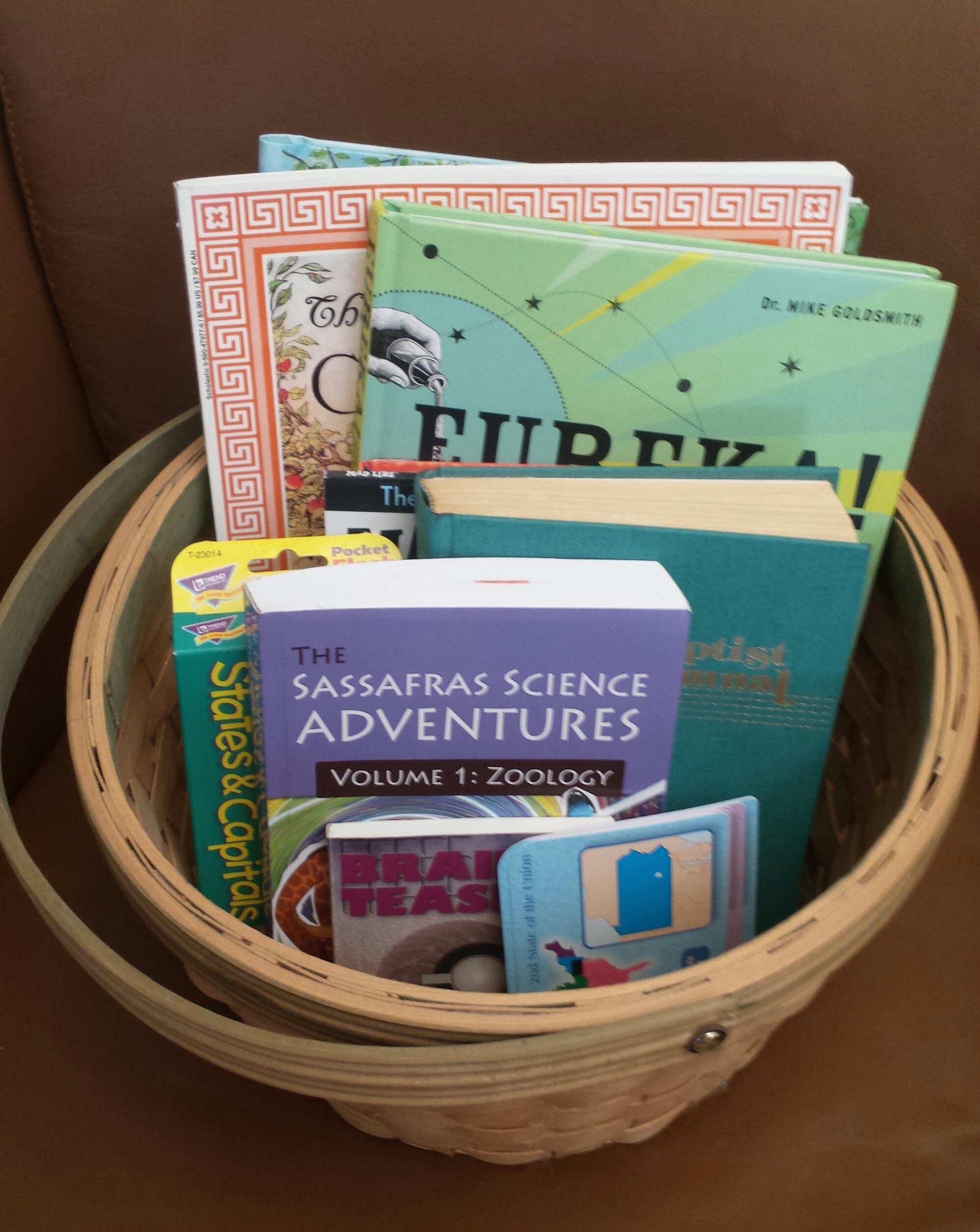 Living Books: Because we follow the Charlotte Mason method as much as we can, living books are very important in our homeschool. Unfortunately, with lots of other responsibilities competing for our time, we don't always get to living books in some subject areas as much as I would like to. Sure, it's no problem when we're looking at literature selections, but when was the last time you used a living book for math? For us, that has not been nearly as common as my son has gotten older, so the Morning Basket time has been a great way to remedy that. He still has his regular textbook math assignment (we do Saxon three days a week and Life of Fred the other two…so really, I guess he is getting more living book math exposure than I was realizing…), but we use the basket to explore the lives of mathematicians and the history of math, too. Over the next few weeks I've share some of the specific resources I've found with you for the different content areas!