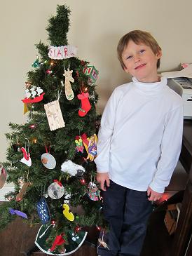 The ornament exchange we participate in is with other families who use the Five in a Row curriculum. Each family (or sometimes each kid in a family) signs up and decides if they want to be on an international list or a U.S. only list. Then, they come up with an ornament based on one of the FIAR books and send it to each family on the list. We have had so much fun doing this over the years and have ended up with so many ornaments that we've started putting up a little Christmas tree in the school room just for them! When we open the envelopes we can almost always guess which book the ornament is from and it's exciting to see all the different places from where the ornaments come.