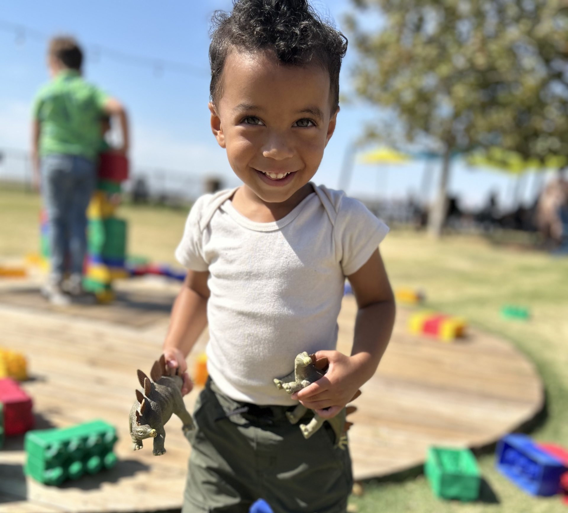 Louie’s provides a great wide open space, mostly fenced in, so parents can enjoy adult conversations while kids make friends building tiny towns, castles and whatever else their imaginations dream up with bright-colored outdoor blocks.