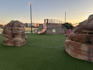 likely be more interested in the slide, the faux boulders, playing tag and making up their own rules for massive games of chase.