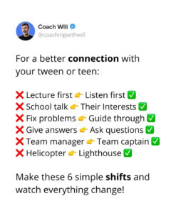 @coachingwithwill – A focus on making personal growth fun for teens with tips and tricks for growth-minded parents. There are a lot of tips for how to be “lighthouse parent” as opposed to a “helicopter parent.”