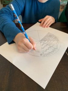 4. Fill each section of your circle with a pattern. Look at your pattern photos. Draw one of the patterns you found in each section of the spinner.