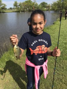 After completing the program, teachers often schedule a field trip to a local body of water so students can try out their new skills. Fowlkes arranged a Saturday fishing outing for students and their families at a pond in Moore so little anglers could catch perch and catfish. Eli Tamez, a third grader at Northmoor, loved fishing and appreciates that Fowlkes is “strict but not too strict.” Eli’s mom, Tonya Lett, values that Fowlkes is more intent on building character than athleticism and provides such a wide array of activities in PE.
