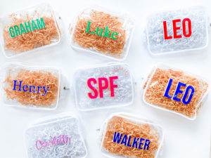 “The personalized pouches are a customer favorite,” says Erin. “Many customers personalize these with initials, full names or labels for organizing their pouches in purses or diaper bags. At $12.00 they are a great price point for teacher gifts!”