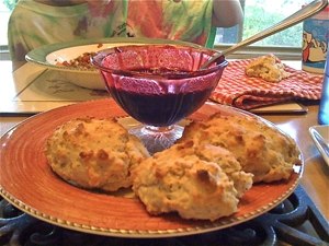 A couple of weeks ago I was fixing dinner and felt the need for some sort of biscuit but I didn't have a box of Jiffy handy. I refuse to roll 'em out so I came up with a drop biscuit.