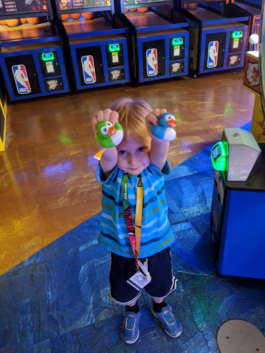 blast. Bowling, laser tag and a gravity ropes course are active play options that let kids use up some of that pent-up energy when the park and other options aren't as available due to inclement weather. There are also classic arcade-style games and kids can earn points that accumulate on digital cards for prizes. We spent almost four hours at Main Event and my sons could have easily stayed double that amount of time because they were so entertained. It's a perfect venue if your kids are different ages like mine too: 11, 6, 3 and 6 months.