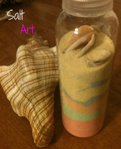 - Using a funnel, layer the salt into the container.