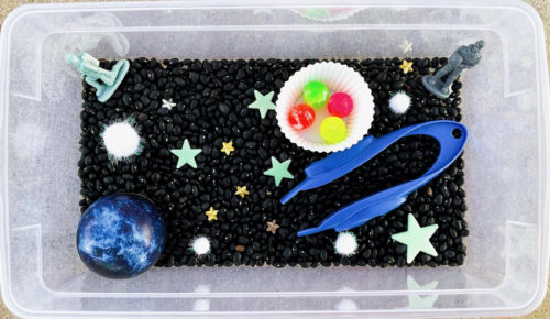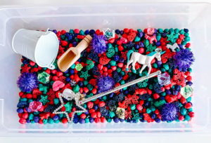 Sensory play is crucial for child development. It facilitates natural learning through play, and encourages a child to use each of their senses. Sensory activities allow children to grow in language development, fine and gross motor skills, mathematical reasoning and more! Sensory play is also great for calming an anxious or frustrated child.