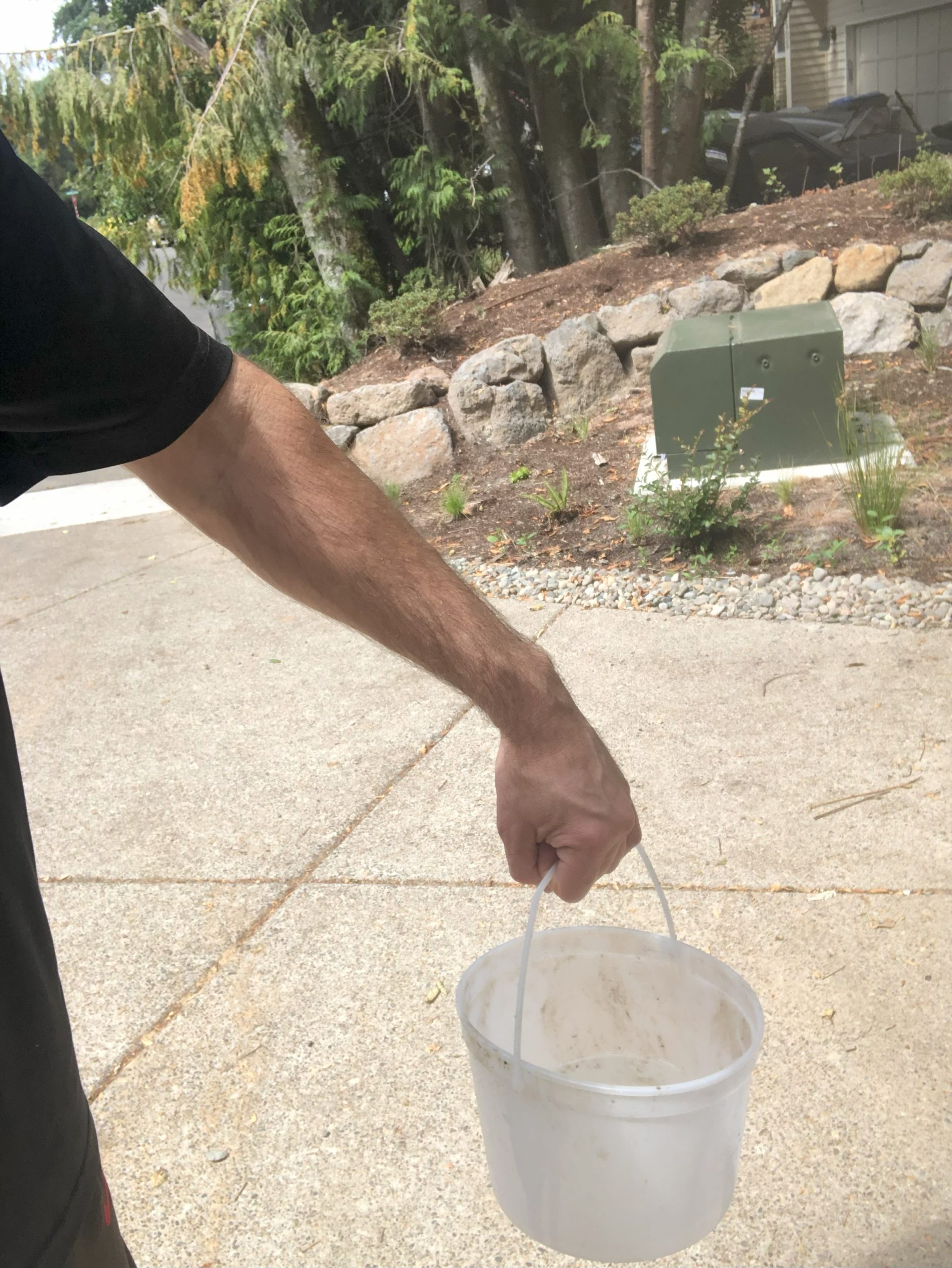 - Now you’re ready! Pour some water into the pail. You probably want to start this with a little bit in there. Way less than half full. After you get the hang of it you can add more water…