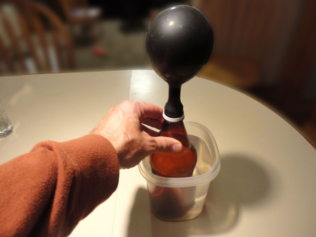 - A balloon that has been inflated several times, a small mouthed bottle (I used plastic, but glass will work as well)