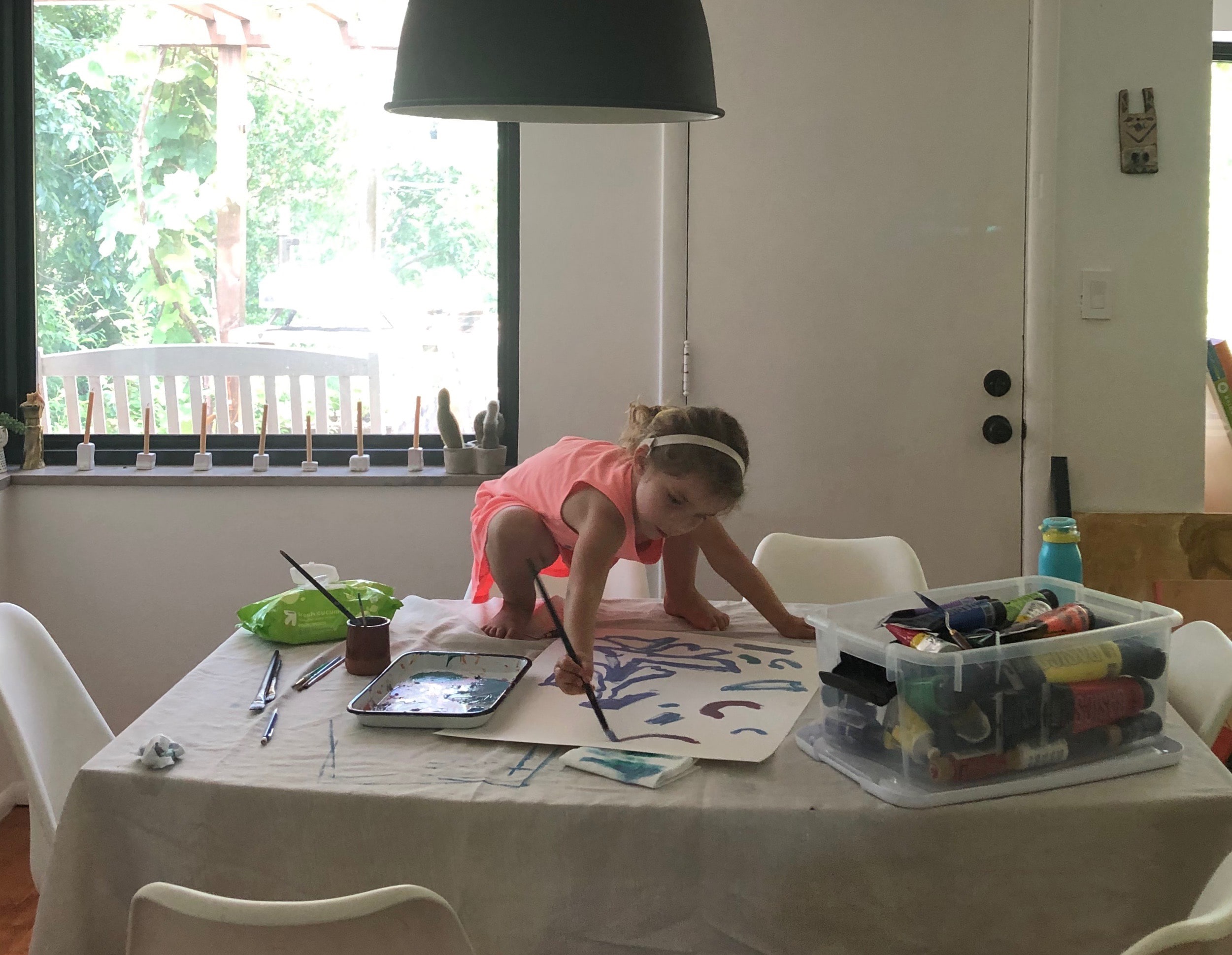 When I painted and one of my kids wanted to join in, I started saying yes. I got less done, of course, but I hope they remember those moments always. And acrylic paint on wood floors comes up so much more easily when you just keep painting and clean it up later. Play dough crumbs, construction paper scraps, glue spots on the kitchen table, dried grass from wet feet running inside have all become things I’ve tried to do a better job of appreciating instead of quickly removing as if they never happened. As the old saying goes, they will be gone before you know it.