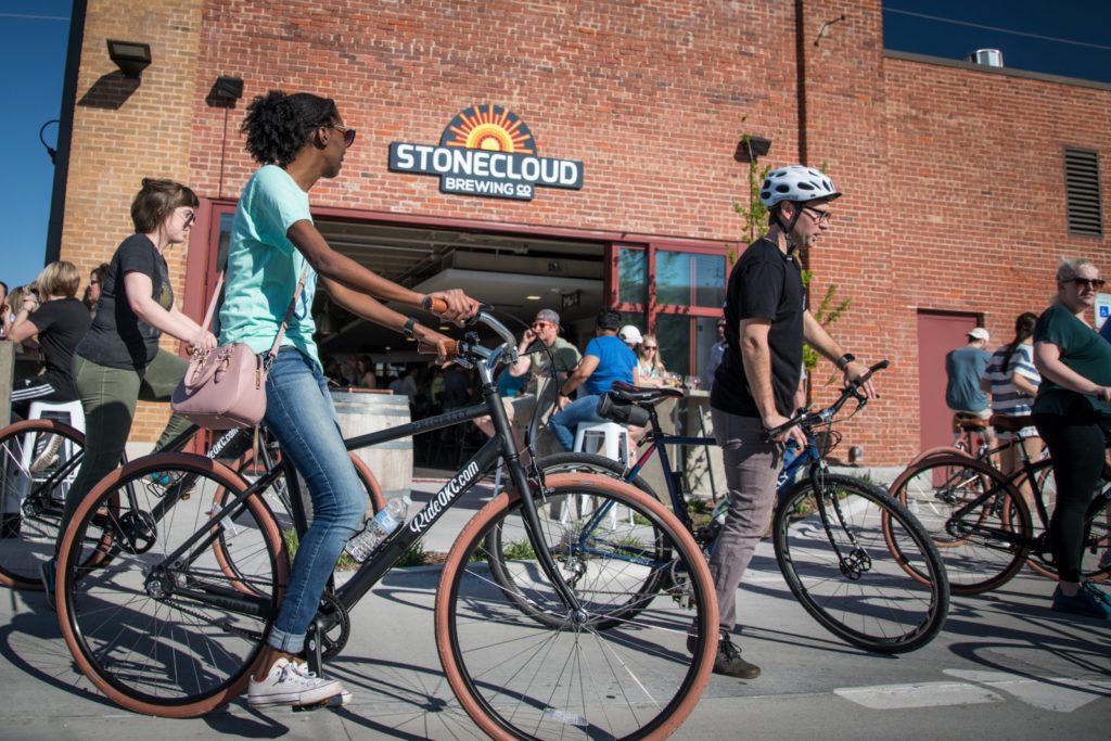 Midtown is a prime locale for hopping on the Oklahoma City Streetcar. There are platform stops along N.W. 10th St at Hudson and Harvey Avenues that can easily connect passengers to other districts like Bricktown and Downtown. If you travel downtown, head to the top of the Devon Tower for a drink at Vast. If you choose to stick around Midtown, stop by Fassler Hall to share some duck fat fries and play a game of ping pong on the patio.