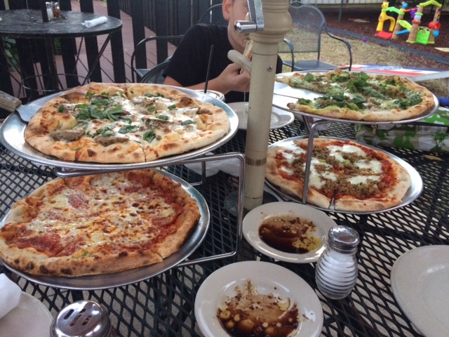 Our family picked a beautiful Monday evening to take advantage of this great deal and dined outside at the location on Western Avenue (there's also a location in Deep Deuce). We had eaten there before, but had somehow missed the huge kids' area outside! There's a completely fenced area with a play structure, as well as games and toys for you to enjoy while you wait for your pizza. As the sun went down and the weather started to cool a bit, we took refuge on the heated outdoor patio. That gem ensures that you can enjoy outdoor dining year round!