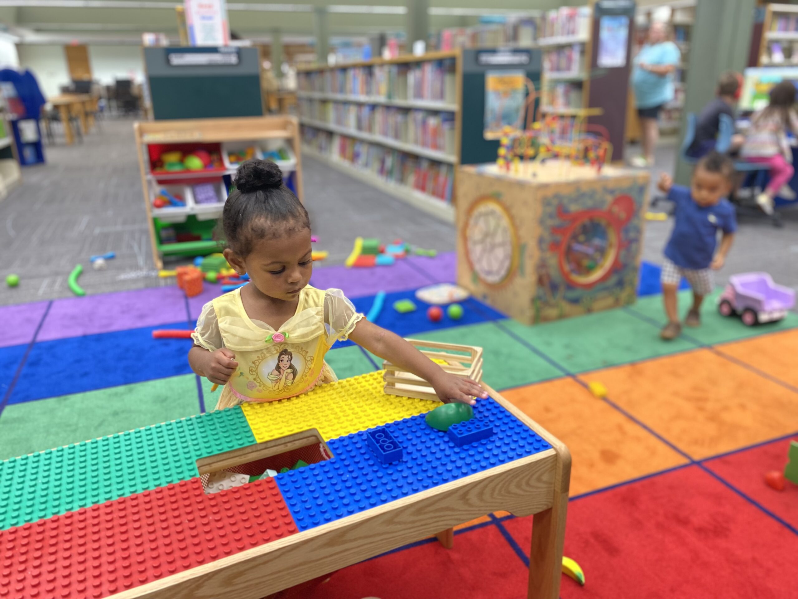 Kids eagerly waiting and likely discovering what’s available on the shelves! You’ll find other parents, babysitters, friends or family members who are looking forward to exploring the books that are available!