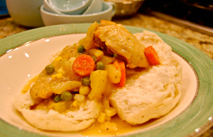 • Serve chicken and veggies over biscuits.