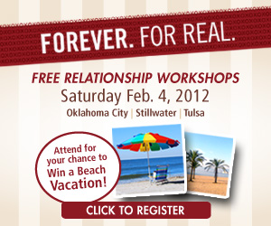Mark your calendar for Saturday, February 4th for a relationshipchanging experience! Strengthen your relationship by attending this free “Forever. For Real.” event at one of three sites, the Cox Convention Center in Oklahoma City; the Tulsa Convention Center; or the Stillwater Community Center. The event at the Cox Convention Center will be held from 10am-4pm and there is no cost to attend.