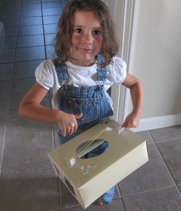 The result?  When I need some time to work with my nine year old (or do other random chores) and she doesn’t seem to be doing anything productive, I steer her toward her drawer and she’s busy for at least half an hour.  She’s made violins, binoculars, puppets, and more—often when she gets into the drawer on her own.  Every so often I look through it to see if she’s running low on any favorite supplies, but otherwise I don’t have any upkeep.  She gets to create when she’s ready instead of waiting for me to get down the supplies and I am able to get some things done, too!
