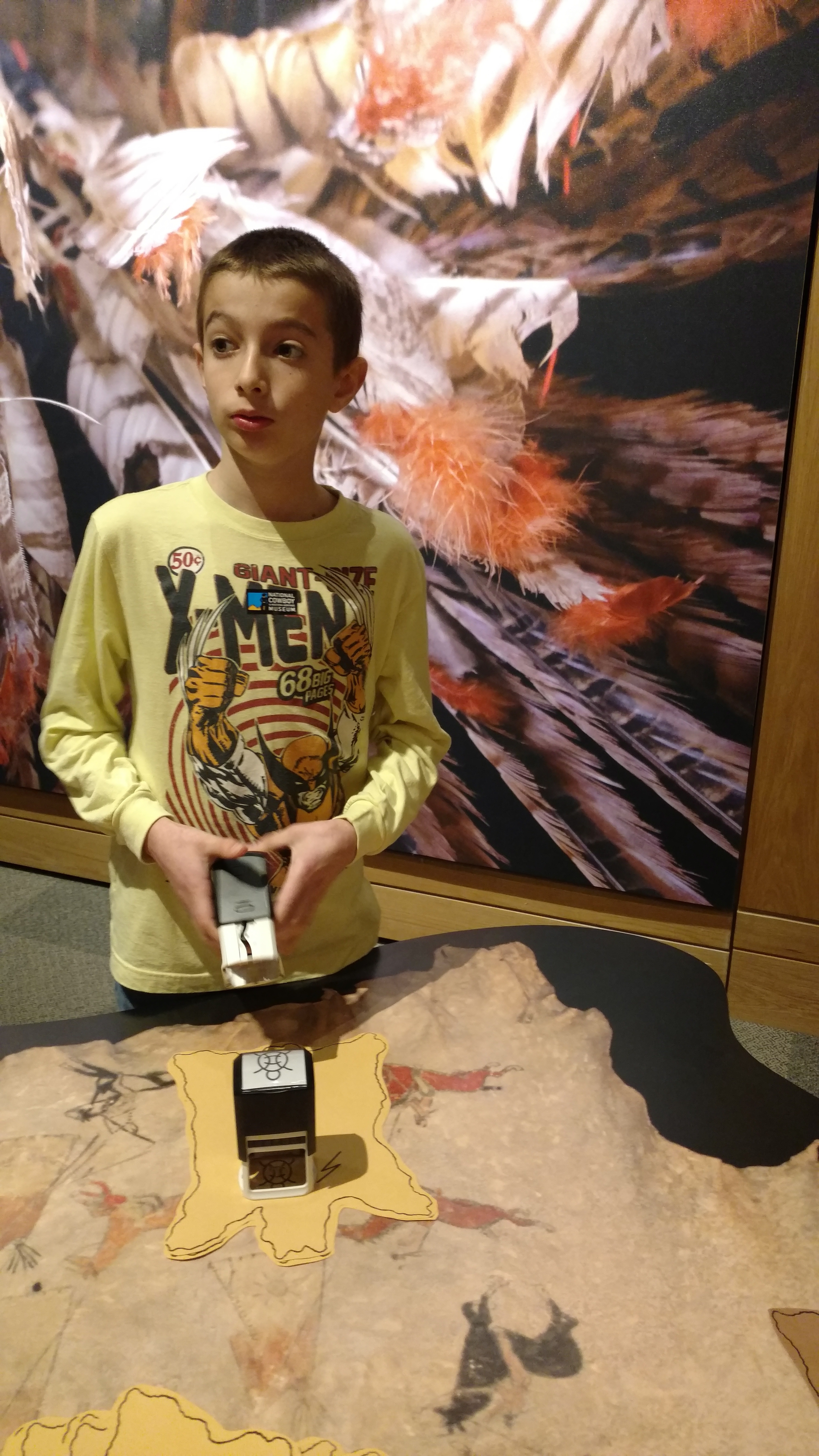 - Activities can fit multiple ages: Some museums have an activity for each age set, the basic divide of toddlers, early elementary and older kids. This museum has basically something in its different areas for all of the above. When we saw the available arts-related activities, for example, it was immediately apparent that all three children could participate at the same table. That's a huge plus as the parent overseeing multiple children. Sam, Isaac and Gabriel all created a stamps-as-symbols decoding project without any complaints of "This is too hard for me" or "Can we do something else now? This is for babies." That is not every venue and I was really glad they could all participate at their own level.