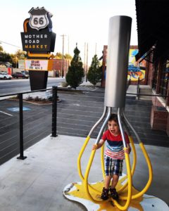 Atom’s Cosmic Curios, home to Buck Atom, Space Cowboy. Buck stands 21 feet tall, and, according to his official biography, was a rodeo cowboy before being beamed up onto an alien spacecraft in 1953. We’re glad he’s found his way back home to Route 66! Buck Atom’s Cosmic Curios itself is a gift shop specializing in Route 66 memorabilia and is located inside a converted PEMCO gas station. If you’re lucky, you may even be able to book a stay at Buck’s Cosmic Crash Pad, an adorable Air BnB adjacent to the gift shop. - Other can’t-miss Mother Road stops include the Decopolis DISCOVITORIUM. You’ll find plenty of unique gifts for kids and adults, and the whole shop is designed to be an immersive experience. The “Mesmer Island” area houses dinosaurs and fossils, and even a dig site where kids can try their hand at identifying rocks and minerals! Another section of the store is designed to resemble an art deco-era main street, complete with a sweets counter selling old-fashioned candy! Next to Decopolis is The Sky Gallery, which sells local artwork from jewelry to fine art, woodwork and more.