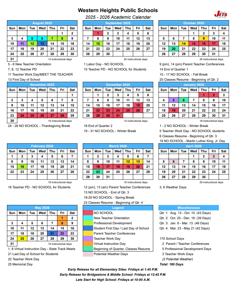 Key dates for the Western Heights Public Schools 2025/2026 school year: