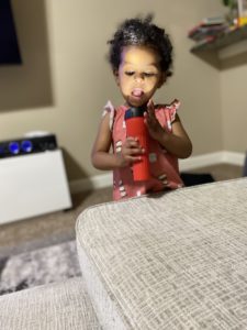 My 2-year-old loves Tanukis, an animal we learned about at the OKC Zoo. A Tanuki is often referred to as a raccoon dog. This little creature is SO cute, and she couldn’t stop talking about it, so we incorporated it into a game. We call out for Tanuki (and I mean to the tops of our lungs, which often results in hysterical laughter). We then pull up videos on the Tanuki and learn some interesting facts about them.