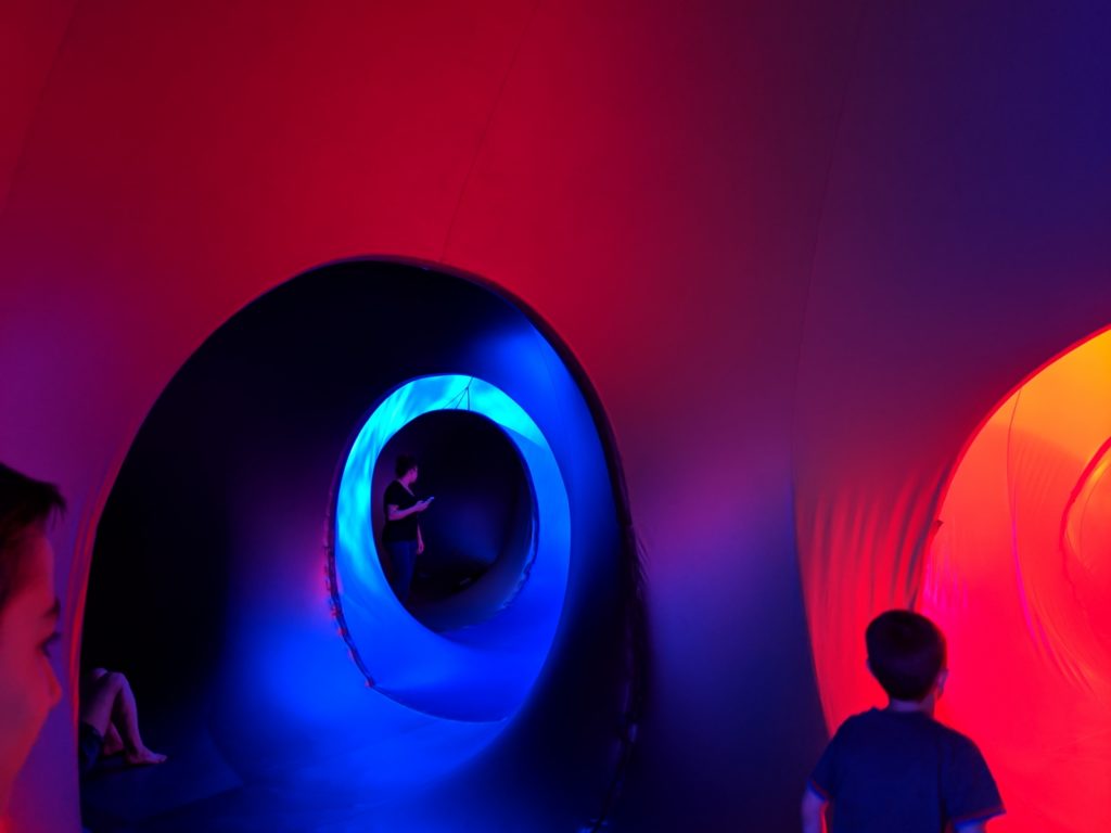 Once kids get used to being inside, they may want to run into different areas and through its tunnels, but knowing that they have to stay beside, walk and be calm is unlike most children's venues, which can be really positive. Staying just with my children and asking "What do you think of this?" as they saw the different light and color variations and felt the temperature drop from outdoors made for a memorable visit.
