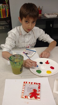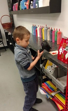 somehow meaningful gets to be a challenge. Your child can create something unique that grandma is more likely to hold onto than, say, another pair of slippers this year. I thought about the possibility of grandparent gifts before we went to the class but what surprised me once we were there was the fact that Isaac, age 5, and Sam both wanted to give the gifts they made to their Dad. They waited up to greet him and it was really just beautiful to stand back and watch that, the perfect start to the holiday season. I also have to say that I loved the fact that the mess stays behind. My younger children were amazed that paint dribbling onto a tablecloth wasn't the end of the world at Artsy Rose. I can't say the same for our dining room table.