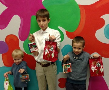 Make a memory: Children are more likely to remember activities if there's a physical component, a hands-on way to do something. I really want my children to remember this season, the Christmas they were 10, 5 and 2, when we were a family of five before becoming a family of six. We've tried painting projects before but they didn't go well enough to create something I would really consider a gift. The attention span and skill level required just isn't there for the age span we have. A lot of the time, if Sam can do it, Isaac can't, much less Gabriel, our toddler. Or it happens that if Isaac can do it, Sam is bored. This wasn't like that. They painted a Christmas frame and decorated a glass ornament. Pre-drawn canvases are also available if older children want to create a wallhanging.