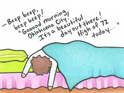 I double-checked my alarm before going to bed and when the alarm sounded the next morning, I hopped out of bed and wandered into the living room when I fell asleep on the recliner. The silver lining here? I didn’t hit snooze.