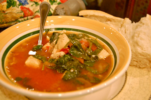 - Stir the spinach down into the soup and dish it up.
