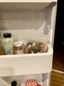 In year two, we simplified. We started using a tall plastic container (like a to-go container for soup) and kept it in the door of our fridge. No bugs, the smaller footprint forced me to chop our scraps, and there was nothing extra to buy.