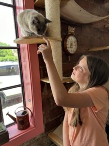 The purpose of the lounge is to socialize and positively enrich cats available for adoption through Safe Haven Animal Rescue. Since the Cafe opened, more than two dozen kitties have found their fur-ever homes.