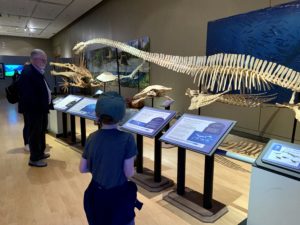 As soon as you pass through the doors behind the information booth, you’ll be looking right at the face of the world’s tallest dinosaur, the Sauroposeidon proteles. The 40-foot-long neck and skull peek into the museum’s Great Hall to greet visitors. It felt like it was saying, “hey friends! How ya’ doin?”