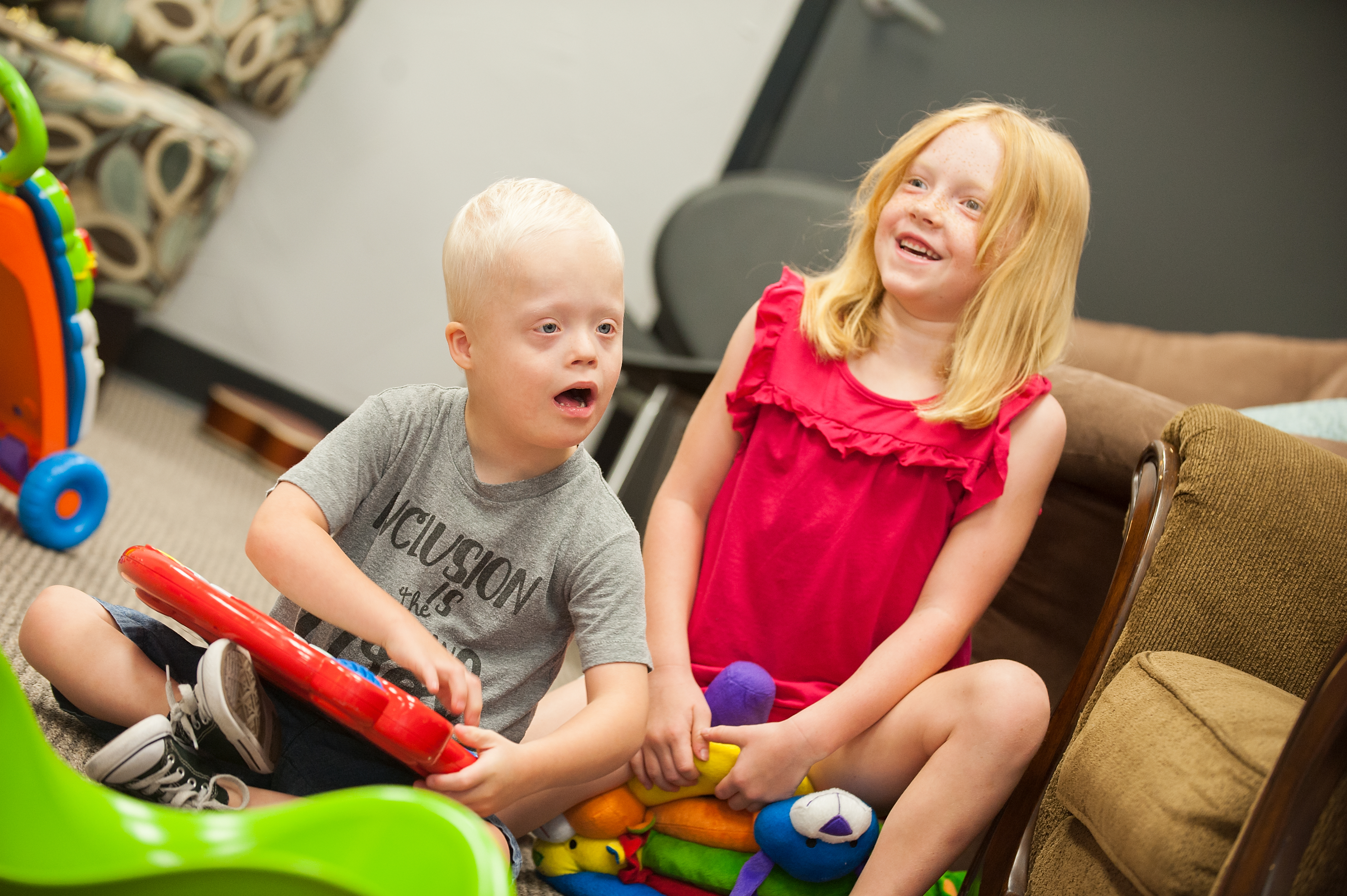 Years later, Austen seeks out Hudson when they’re attending an event at DSACO, makes video messages to send to him and invites him to her birthday parties. The fact that Hudson is nonverbal and doesn’t always reciprocate friendship doesn’t quell Austen’s desire to spend time with the spunky, adventurous boy who loves to go to school and play outside. Around age 5, Austen began to ask questions about Hudson’s behavior. Harrison explained that Down syndrome is something Hudson was born with, just like Austen was born with red hair. Some of the things Austen learns easily, like walking or talking or learning to share, can take kids with Down syndrome longer to figure out.
