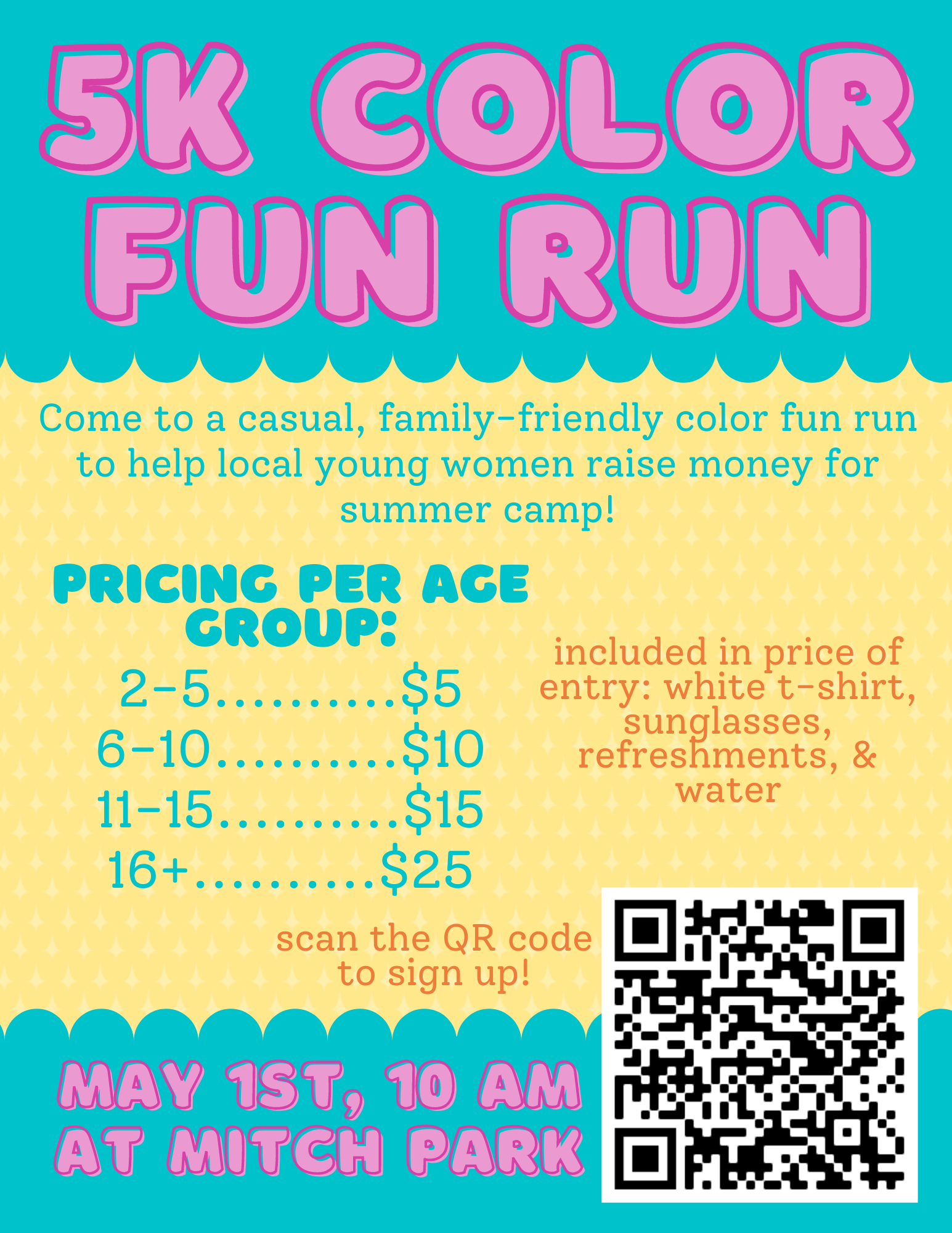 Features a family-friendly color fun run. There will be a mile run for kids and a full 5K for adults and teens.