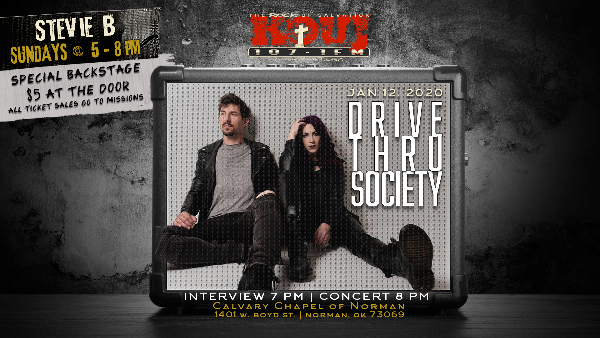 Featues a live interview & concert with the female-fronted, Christian hard-rock band, Drive Thru Society. Doors open at 6:15 pm. Proceeds benefits missions.