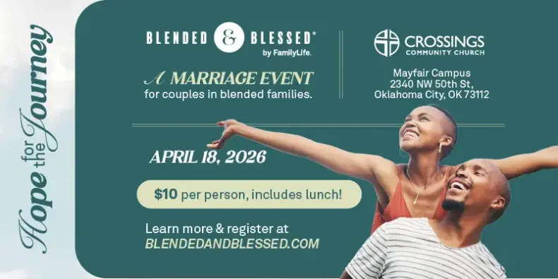 Blended & Blessed® is a one-day marriage event created for couples in blended families. Experience biblical teaching, encouragement, worship, and connection with others walking a similar path. Centered on Hope for the Journey, this event offers practical tools and renewed hope for your marriage.