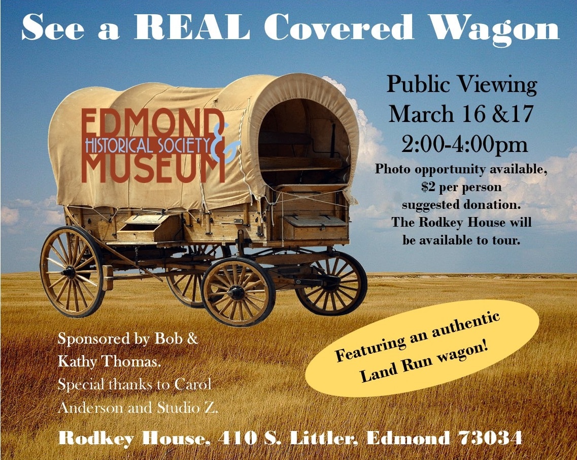 Features an authentic wagon from the 1889 Land Run. A staff person will be on hand to share information and assist with taking photographs. The wagon will be located outside at the historic Rodkey House. The Rodkey House from 1901 will also be available to tour during this time.