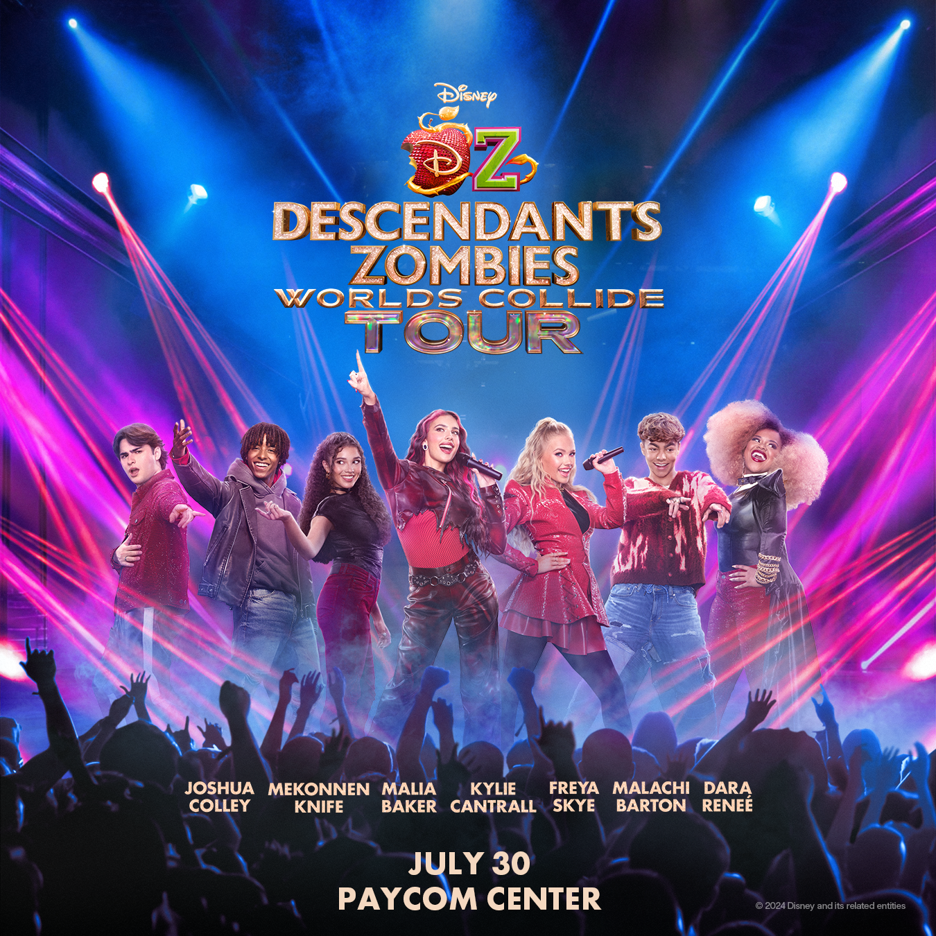 The arena tour will celebrate the high-energy music from Disney’s “Descendants” and “Zombies” franchises. During the interactive live concert experience, see Kylie Cantrall, Freya Skye, Malia Baker, Malachi Barton, Dara Reneé, Joshua Colley and Mekonnen Knife.
