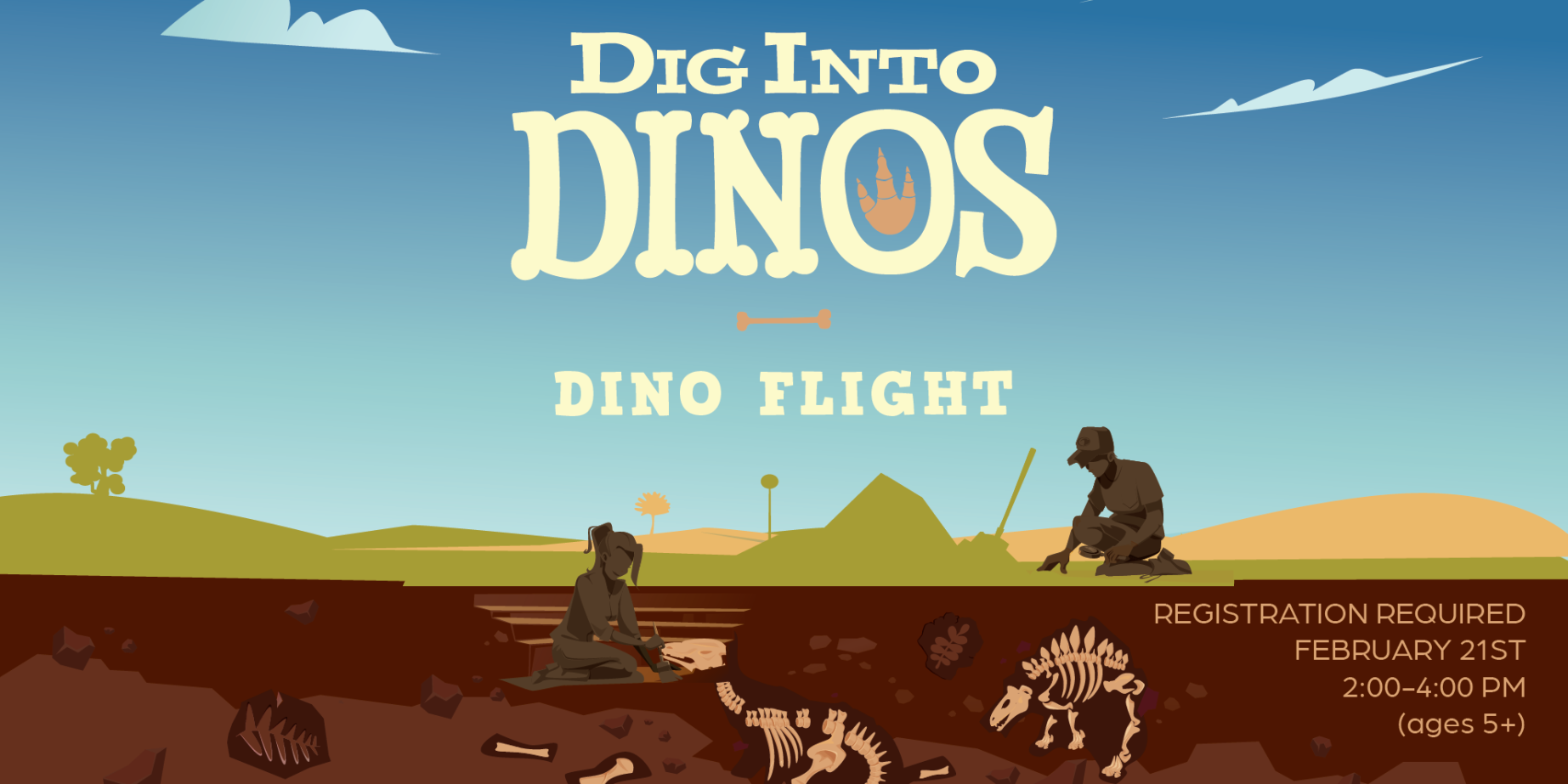 Explore the connection between dinosaurs and modern birds. Through fun, interactive, hands-on activities, we will discover how some dinosaurs took to the skies! This program is suited for ages 5 and up.