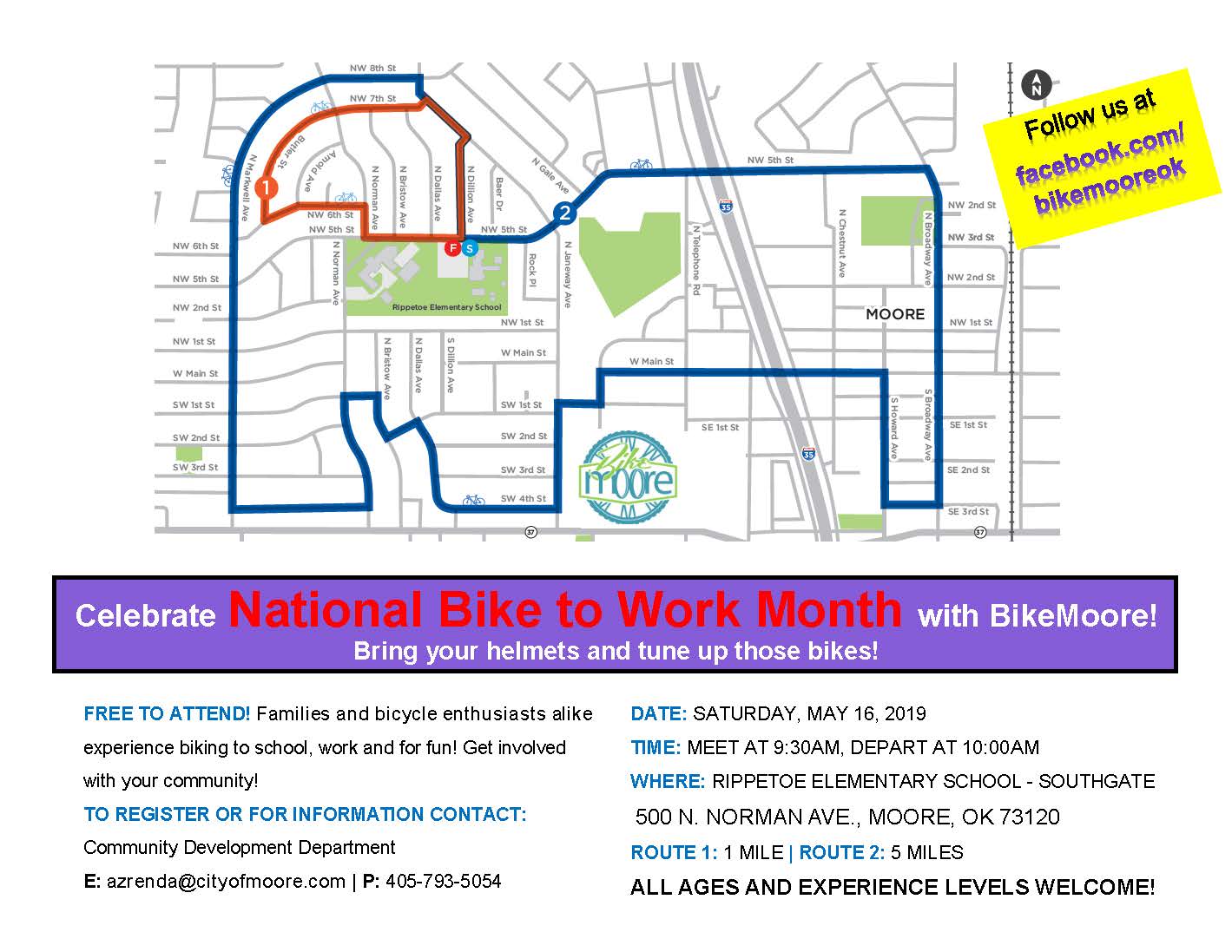 Families and bicycle enthusiasts can participate in a community bike ride. Two route options are available. All experience levels are welcome.