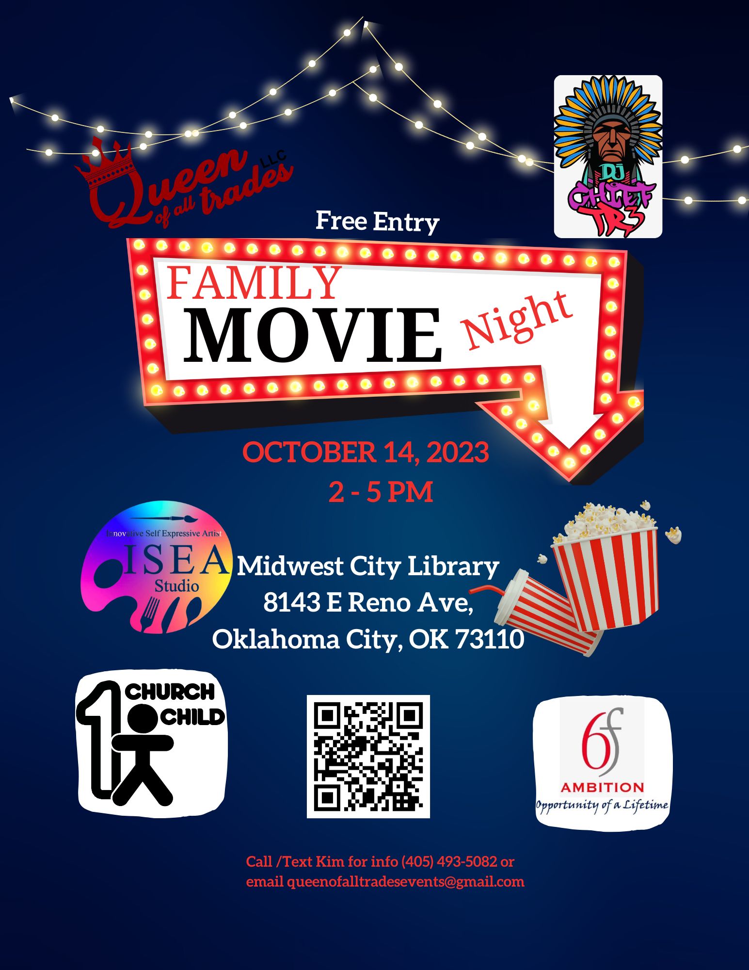 Features a fun activity with ISEA (Innovative Self Expressive Art Studio) and a family-friendly movie.