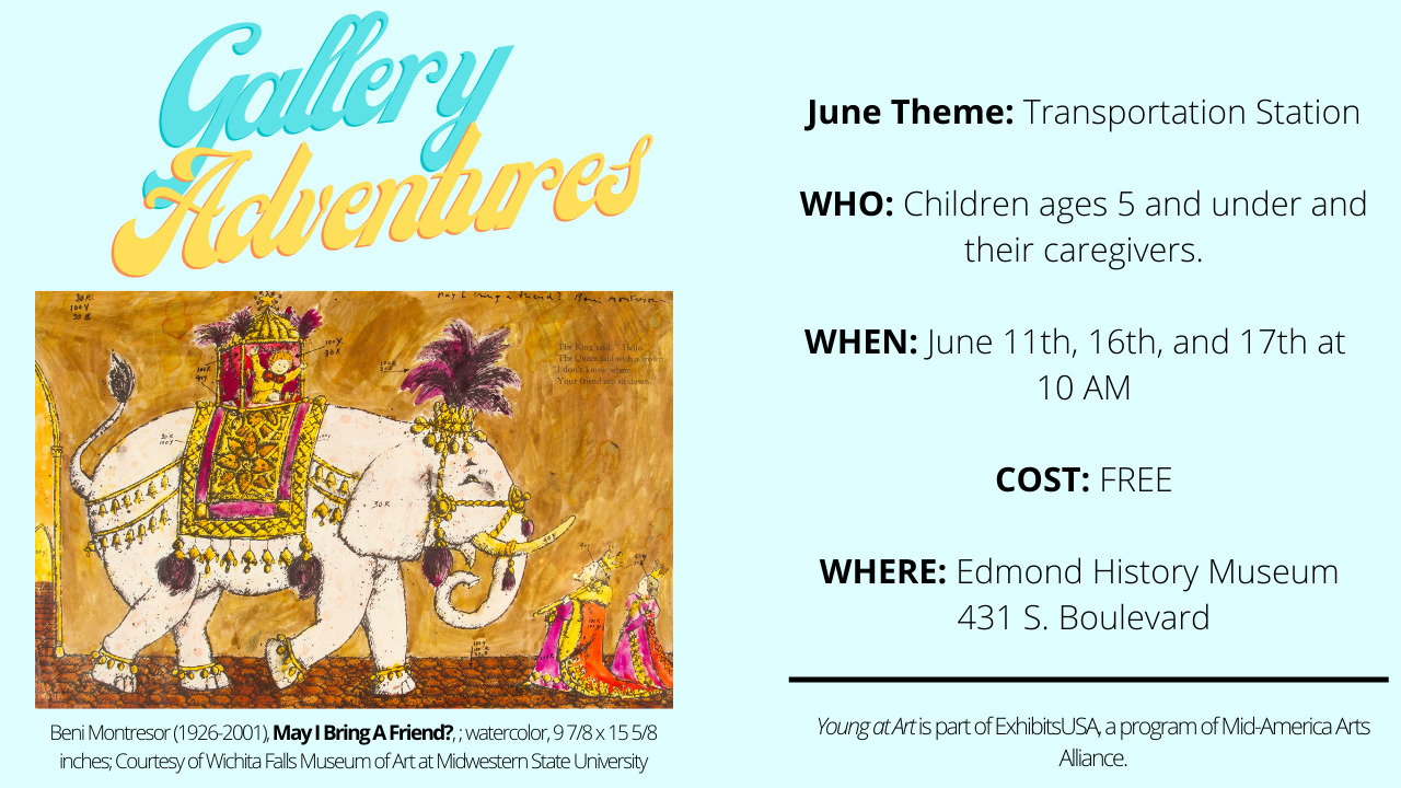Features an exploration activity in the museum gallery, storytime, and songs. May and June will take place in a traveling exhibit called Young at Art: A Selection of Caldecott Book Illustrations.
