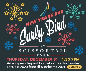 Features an early-bird New Year’s Eve celebration created for families with young children. As the crowd counts down to 7 p.m., a lit Scissortail bird will be raised to the highest point in the Park on Scissortail Hill. Fireworks will immediately follow.