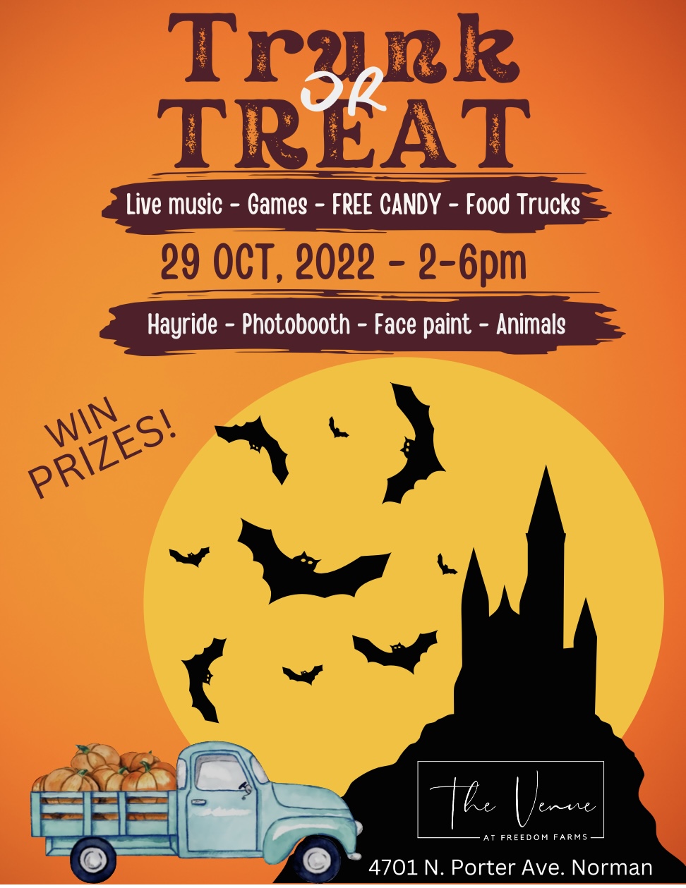 Feature live music, food, hayrides, trunk-or-treating, bounce houses and more.