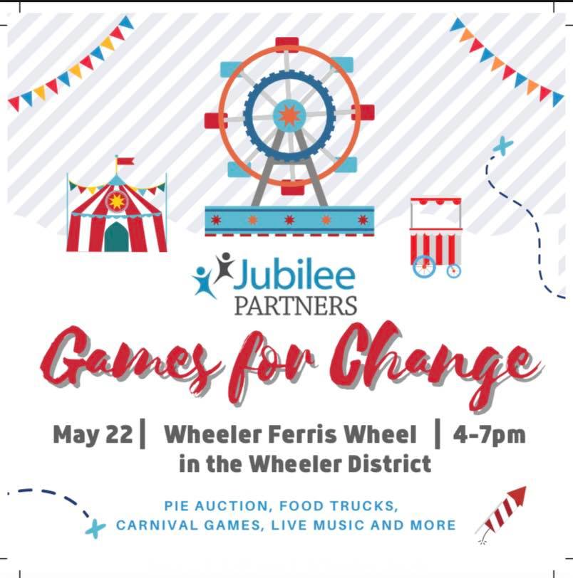 Features a community carnival event to raise support and awareness for Jubilee Partners. Enjoy a fun night with live music, a pie auction, carnival games, a dunk tank, and more.
