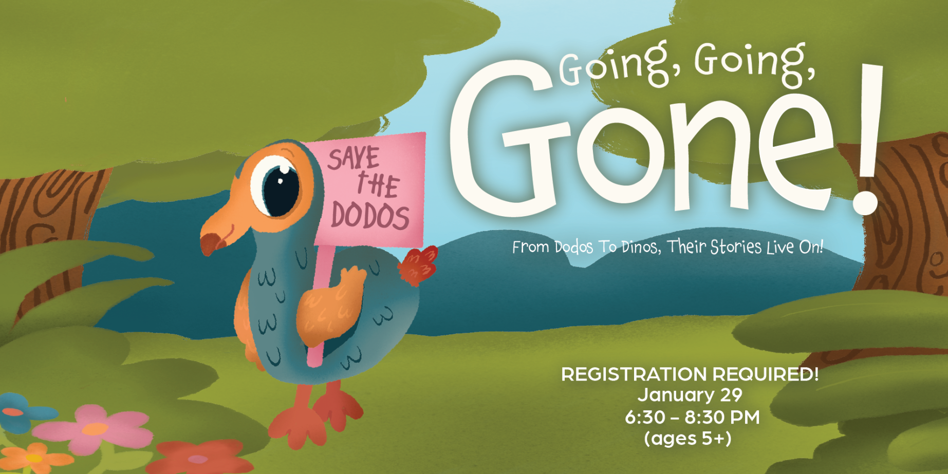 Discover how animals today face some of the same challenges that led to the dodo’s disappearance. Through hands-on activities, stories, and after-hours exhibit exploration, investigate some causes of extinction and learn simple ways to help protect wildlife. This program is suited for ages 5 and up.