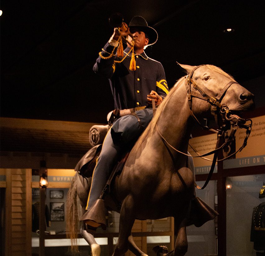 Learn about the different perspectives of Black history in the West. African-American soldiers, known as Buffalo Soldiers, played an important role in the West. In the face of prejudice and discrimination, the stories and impact of these soldiers are seen today and in Museum galleries. Hear the bugle trumpet sounds made by Buffalo Soldiers in the Joe Grandee Gallery of the American West and make a trumpet of your own.