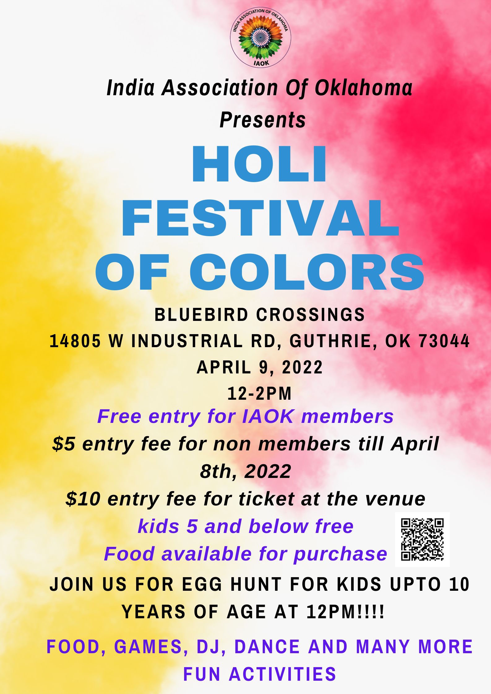 Festival of colors is a joyous celebration of the coming of spring and the largest Holi annual celebration In Oklahoma. The event features color throws, crafts, Bollywood music, DJs, dance troupes, food vendors & food trucks.