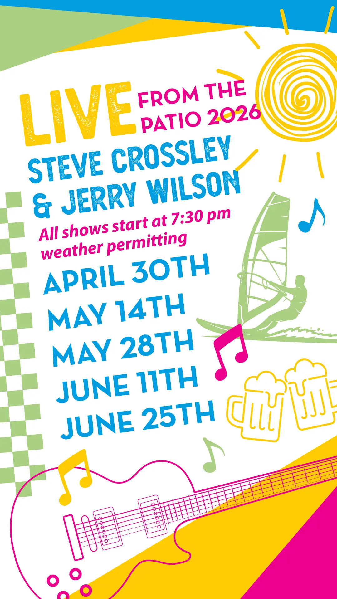 Join us at Louie's Grill & Bar for an unforgettable evening of live music on the patio, featuring Steve Crossley and Jerry Wilson. This free, all ages event is the perfect way to relax and enjoy great entertainment in a welcoming atmosphere! This event is weather permitting, so be sure to check out our website and social media channels for the latest details and updates. We look forward to seeing you there!!!